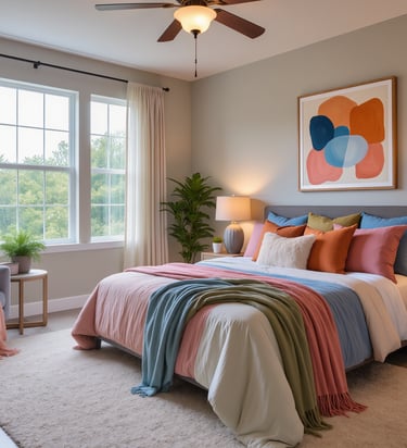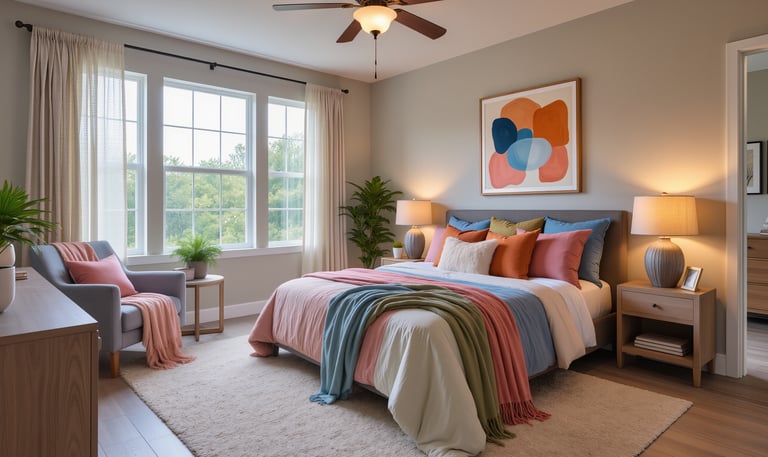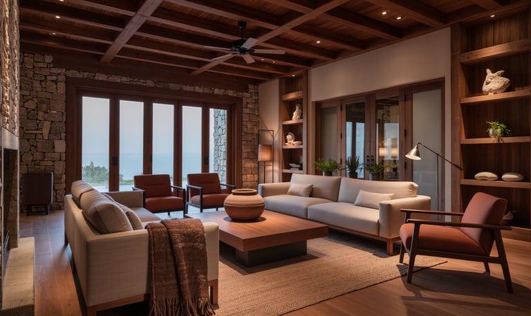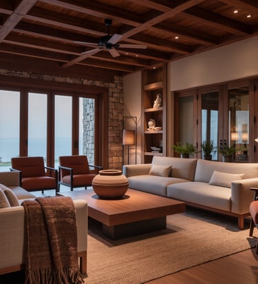 Spaces that invite relaxation, with soft textures and warm lighting, perfect for moments of rest.
