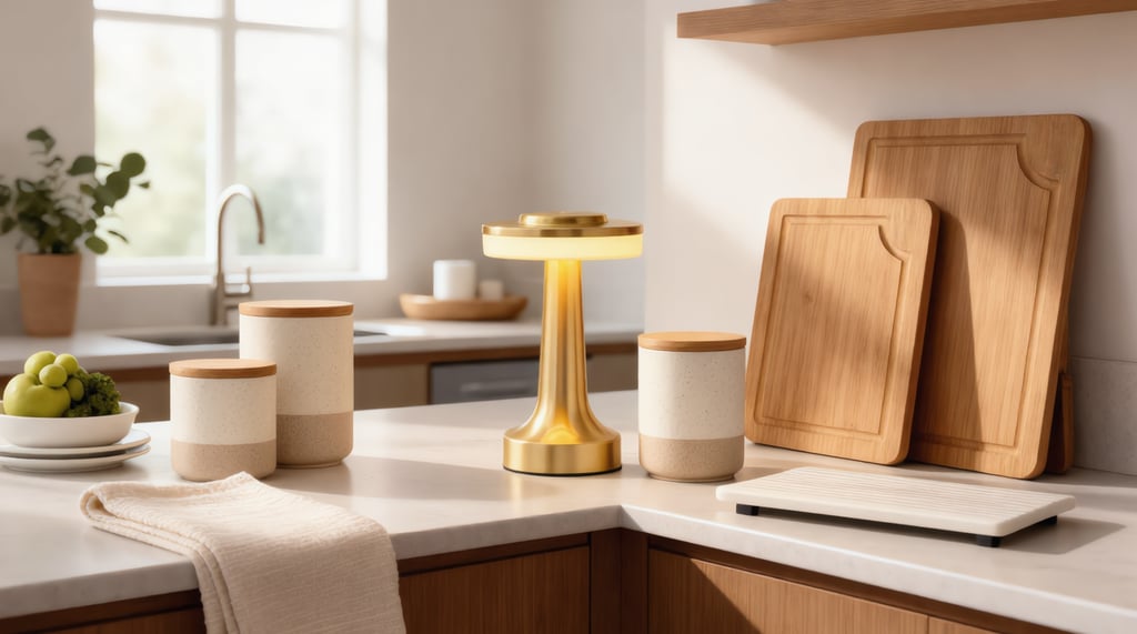 Cozy Modern Kitchen With Warm Lighting and Natural Decor.