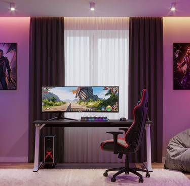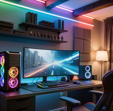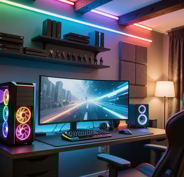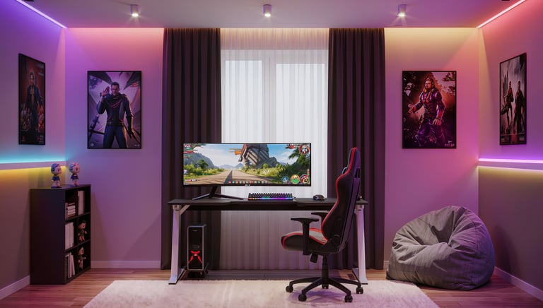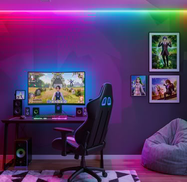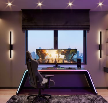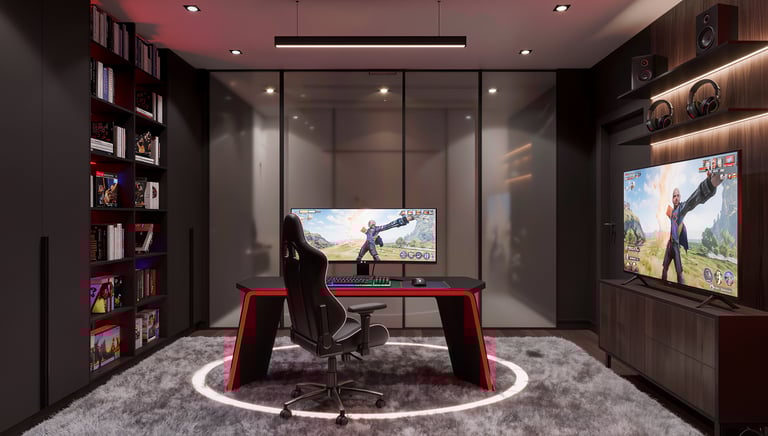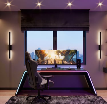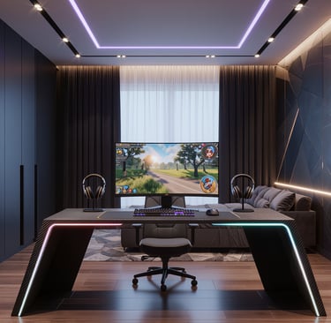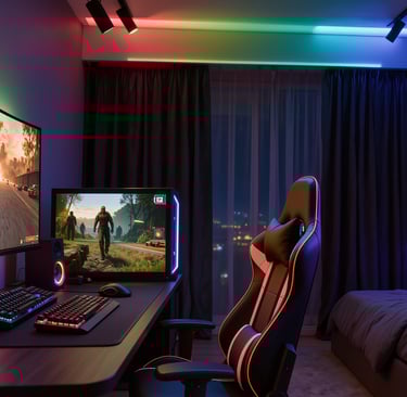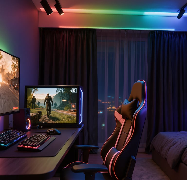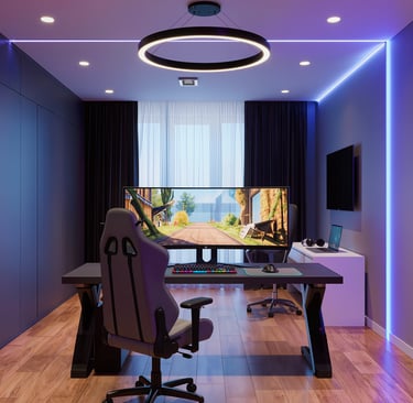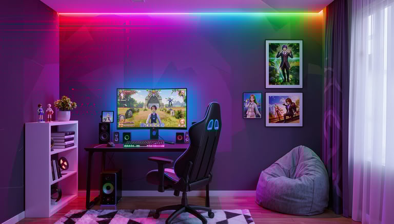 Soft RGB lighting with dimmers helps create a calm, immersive atmosphere without overwhelming the space.