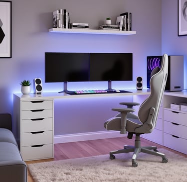 Yes, the setups balance gaming gear with minimalist furniture, making them perfect for both work and play.